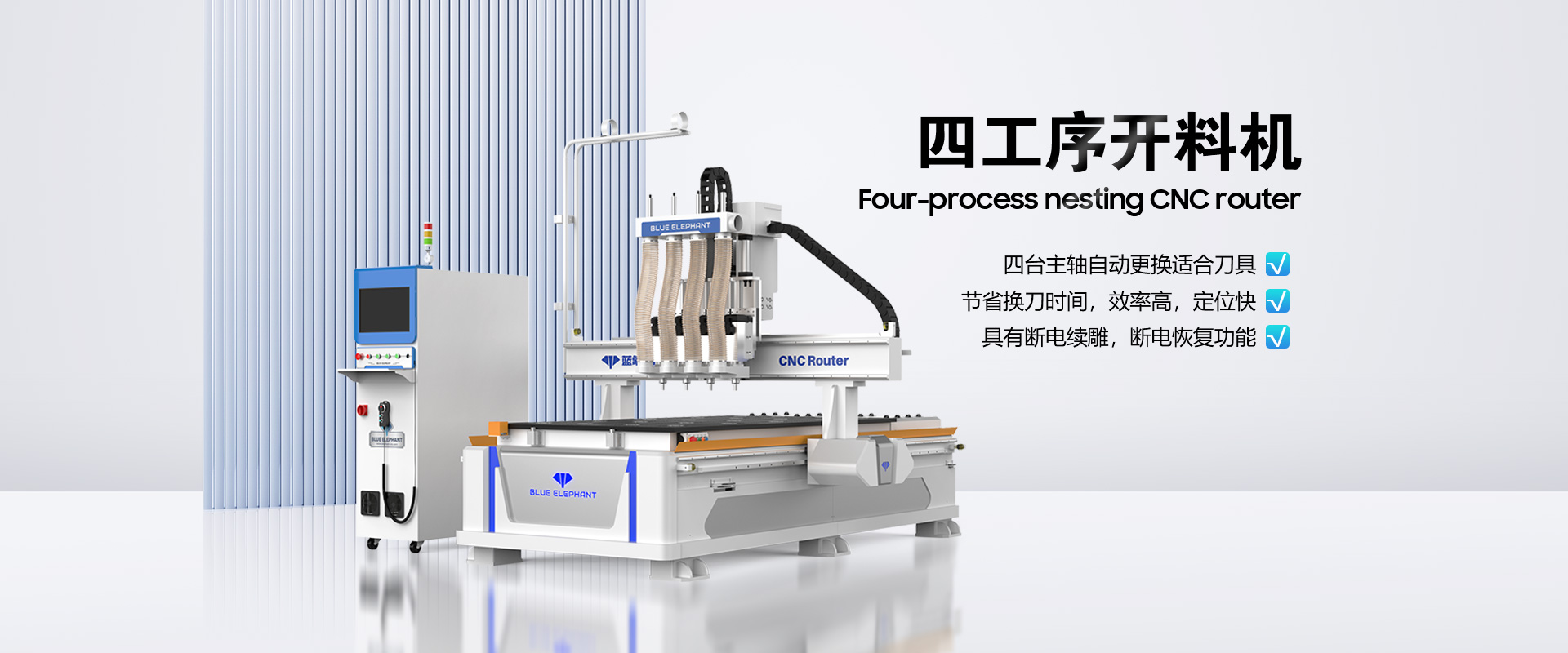 藍(lán)象數(shù)控(BLUE ELEPHANT)是一家自動(dòng)化木工設(shè)備及數(shù)控設(shè)備研發(fā)、制造、銷售、售后服務(wù)于一體的高新技術(shù)企業(yè),為客戶量身打造個(gè)性化需求的自動(dòng)化設(shè)備解決方案。主營(yíng)全自動(dòng)封邊機(jī)、板式家具生產(chǎn)線、數(shù)控開料機(jī)、木工開料機(jī)、數(shù)控排鉆設(shè)備等產(chǎn)品。